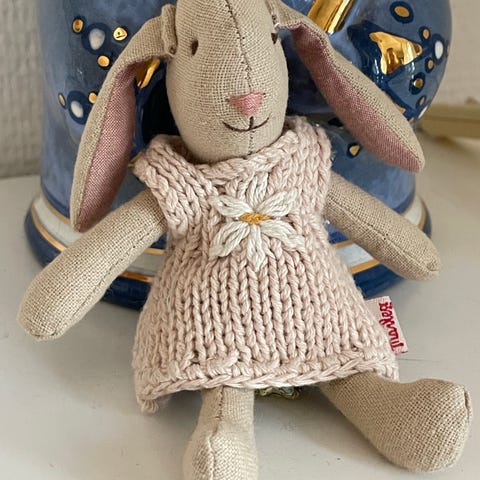 Maileg babykanin med sut i blå vippestol 💙
