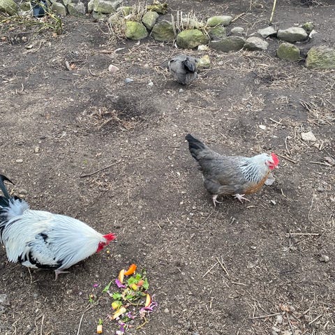 Hønseflok bestående af isa brown, mix af Isa Brown og araucana, mix af Isa Brown og orpington, sussex m.fl. Æggene ser ud som på billedet.