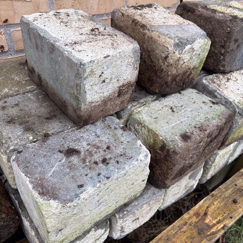 Ca. 240 styk plus sten til to hjørner. Kan nedtages og hentes i Påsken