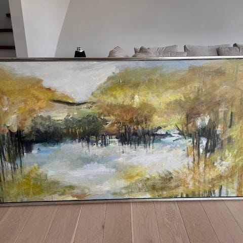 maleri oliemaleri naturmotiv lyserøde og grønne nuancer