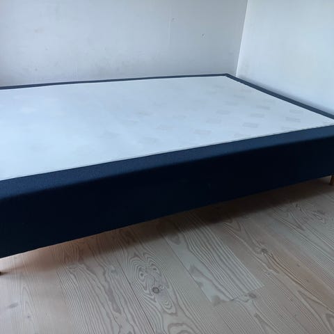 140x200 cm. med 60 mm. comfort topmadras. Med egetræsben. Inklusiv grå sengegavl. Brugt maks 10 gange, sælges grundet flytning. Nypris 6000 kr. Kvittering haves.