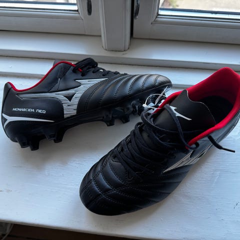 Jeg har købt et par hvide Mizuno Morelia II Proto Ultra Light I størrelse 44.5, som er for store til mig. Jeg har aldrig brugt dem, og de har derfor fortsat prismærket på.