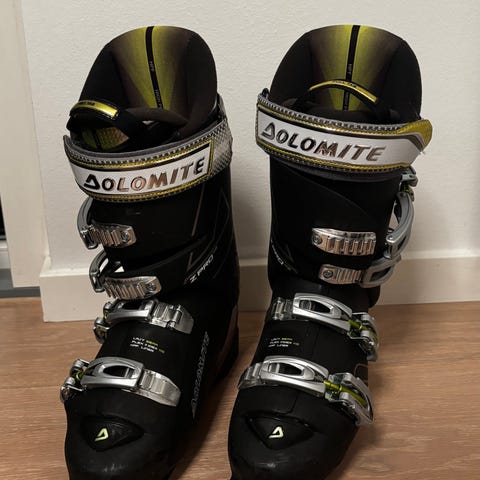 Dolomite Rage skistøvler i grøn farve. Modellen har fire justerbare spænder og powerstrap øverst for bedre tilpasning om underbenet. Støvlerne har hård plastskal og indre støvle med polstring for støtte og komfort. Sålen kan justere i længderne 250-255mm.