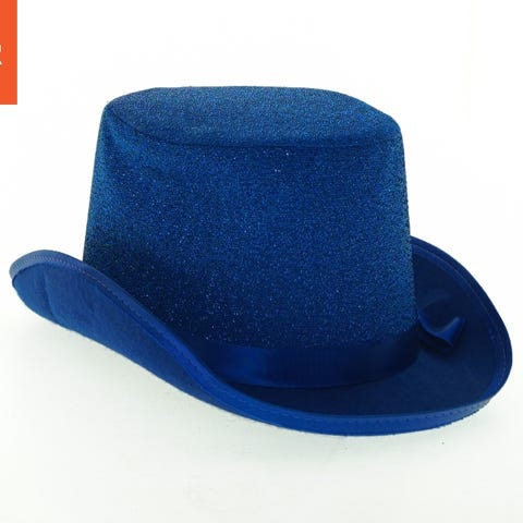Et blåt høj hat i glitter design med matchende satinbånd.
