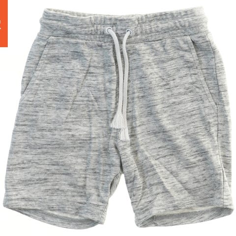 Et par grå sweatshorts med elastisk talje og snøre foran. Shortsene har lommer på siden og er lavet af blødt materiale.