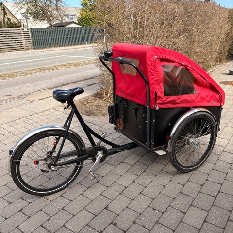 perfekt til transport personer , varer, udstyr eller projekter. Stabil cykel med to hjul foran og god plads i kassen.