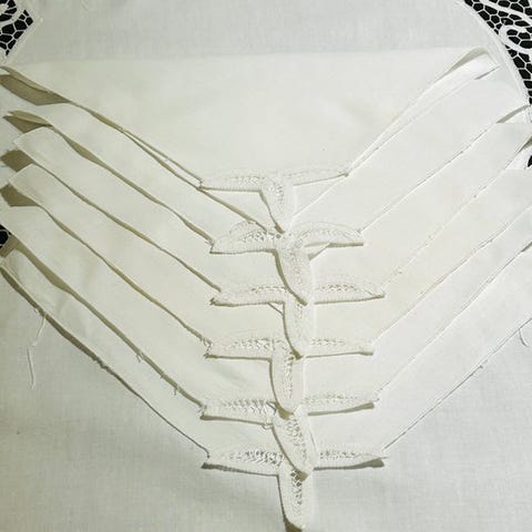 Smuk bordløber med smukke maskinbroderede blomster og åbne kanter, som billederne taget fra begge sider viser. Den er fuldstændig ny og giver et meget elegant bord.