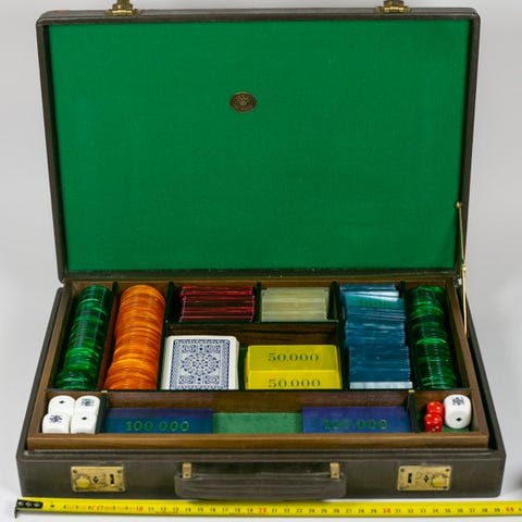 Bridgeboks af thuja-lignum fra Smir i Frankrig, indeholder to nye 52-korts Bridge-ruger, Grimaud Paris-udgaven; mål 6 x 18 x 13 cm, vægt ca. 1 kg. Klik på den blå "gå til varen" knap, for at købe eller byde på denne vare. Den samlede pris vil blive vist inden du afgiver dit bud.