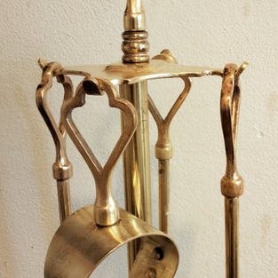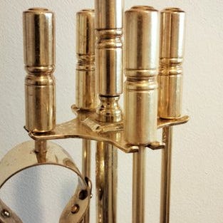 Messing Kaminwerkzeug 1930er - Pejsetilbehør - Messing - Løvehoved-applikationer