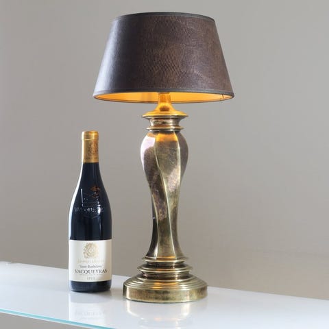 Disse elegante lamper er udformet som amfora/urne-model med lodrette ribstruktur og elegante håndtag i klassisk empire-stil. Den varme mahognifarve kombineret med guldfarvede accenter giver lamperne en rig, tidsløs udstråling.