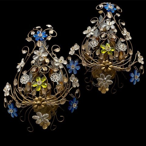 Let tidstegn og små oxideringer på disse vidunderlige blomsterdekorerede væglamper, en model der repræsenterer ekspertisen i Murano-glasværk og kunsten i italiensk belysning. De er som på billedet.
