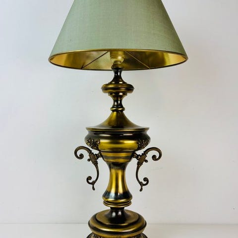 3 vidunderlige lamper, en blanding af klassiske Hollywood Regency- og neoklassiske designelementer, typisk med en messingramme og beige tekstilskærm.All tre er produkter fra det kendte Herda-lamper, sjældne luksusgenstande, der ikke blot fandtes i få eksemplarer.All tre mærker er mærket.De er i meget god stand, der er små brugsspor enkelte steder, men de forstyrrer ikke.De virker perfekt, de kan kobles sammen med en kæde, så de udstråler en behagelig luksusstil.Jeg har givet målene på gulvlampen ovenfor, målene på Assali-lamperne med skærmen er 69x40x40 cm, og uden