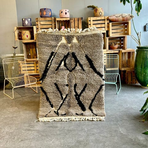 Autentisk Mrirt-tæppe håndvævet i Mellem Atlasbjergene i Marokko, et område kendt for uldens kvalitet og traditionelt berberhåndværk. Dette tæppe er helt håndlavet af dygtige håndværkere ved hjælp af tidløse teknikker.