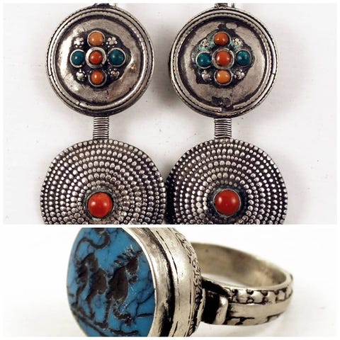 Gamle rajasthanske øreringe fra Indien, lavet af højkvalitets sølv og rødt glasperle. Lignende findes også i Madhya Pradesh. Den større type af denne slags øreringe bæres primært af Gadia Lohar-, Banjara- og Sesodia-kvinder.