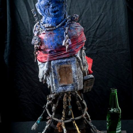 Smukt fragment af en statue tilknyttet Mami Wata-tilbedelsen, vandets gudinde. Den bruges primært til at opnå rigdom, velstand og frugtbarhed. Man giver hende parfume, sæbe, creme, kridt, kaolin, cigaretter...