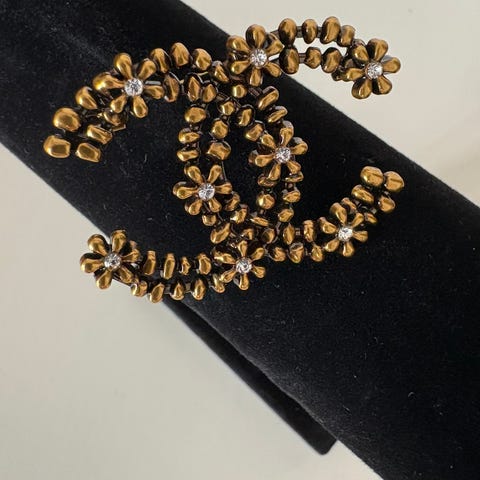 Sølvfarvet Chanel-broche som ny. Meget smuk og strålende at have på ved enhver lejlighed.