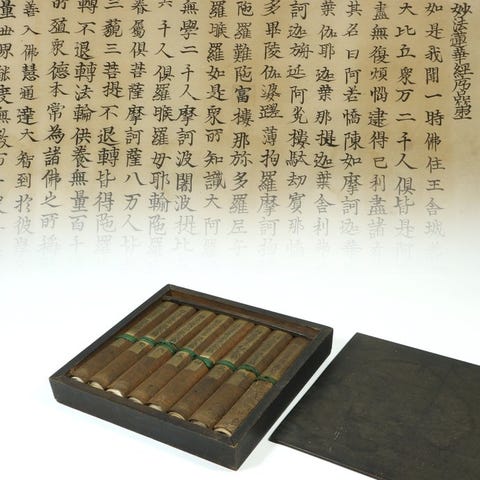 Størrelse 53x18 cm. - Teksten er sandsynligvis indskrevet på pali-sprog.
