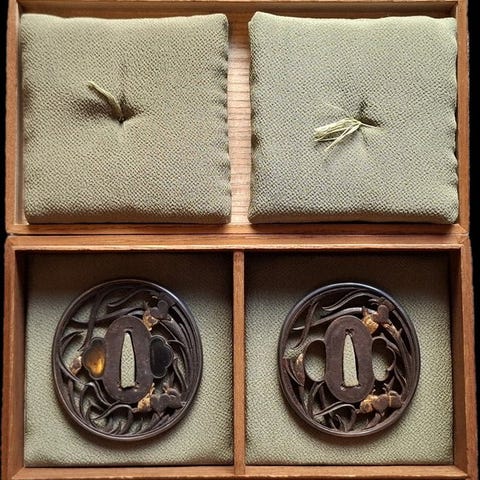 “Et meget sjældent midt-Edo-periode smukt sølvindlagt samurai-tsuba med motiv af Mount Fuji i landskab, der blafrer i vinden, sukashi tsuba” med certifikat fra Nihon Tōsōgu Kenkyūkai