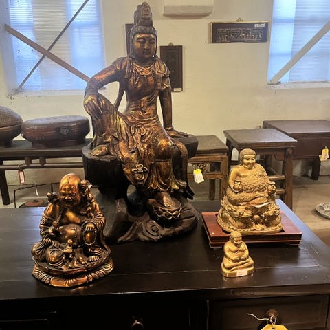En dejlig høj kvalitet antik kinesisk religiøs skulptur, købt som Zitantræ, og vi tror, at dette er korrekt, der forestiller en stor siddende Guanyin iført en traditionel lang kjole med ornamenter, der holder en rulle. Udført i et højkvalitets enkelt stykke eksklusivt Zitantræ med smukke ansigtsudtryk og patina. Håndlavet i det gamle Kina under Qing-dynastiet, 18. århundrede (ca. 1780), Qianlong-periode, muligvis endnu ældre.
