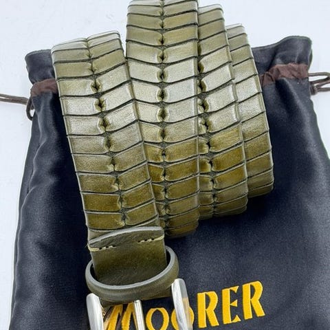 Et sofistikeret og alsidigt tilbehør, der er tilpasset dem, der vælger den håndværksmæssige elegance fra Santoni også i detaljerne. Dette herrebælte er fremstillet i eksklusivt læder med håndlavede farvetoner og lædersyninger i vævet spænde. Det eksklusive element er Santoni Culture-emblemet, et symbol der indkapsler brandets mest autentiske essens, en hyldest til de håndværkere, der har formet Santoni-stilen.