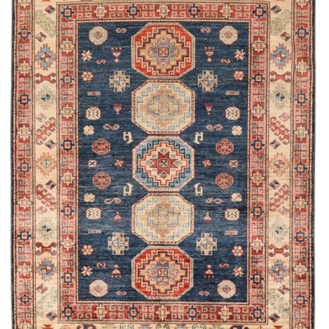 Kazak-tepper fra Pakistan er håndknyttede tæpper, der oprindeligt blev inspireret af de nomadiske stammer i Kaukasus. De kendetegnes ved deres kraftige farver, geometriske mønstre og traditionel symbolik. Typiske farver er rød, blå og beige, som er fremstillet af plantebaserede farvestoffer. Tæpperne er fremstillet af høj kvalitets ren uld, hvilket giver dem en robust og holdbar struktur. Kazak-tepper er populære både på grund af deres æstetiske skønhed og deres holdbarhed.