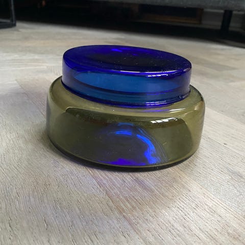 Glas krukke med låg formet som nissehue. Krukken er klar, rillet glas, og låget er i keramik i rød og hvid med prikker. Den samlede højde er ca. 15 cm, mens selve glasset er ca. 8,5 cm højt. Velegnet til opbevaring af småting eller som julepynt i køkken eller stue.