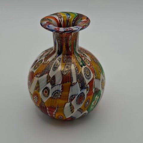 Murano-vasen underskrevet af Alfredo Barbini, italiensk glas, flerfarvet, vintage fra 1960–1980, 17 cm bred og 36 cm høj, vægt 2,5 kg, i god stand med mindre aldersmærker. Klik på den blå "gå til varen" knap, for at købe eller byde på denne vare. Den samlede pris vil blive vist inden du afgiver dit bud.