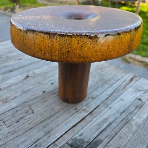 En keramisk kuglevaser med farvegradient glasur i mid-century modern stil, tilskrevet Karin Scholz-Schäfer (født 1939), produceret i Tyskland ca. 1960–1970, diameter 19 cm, højde 16 cm, vægt 1,94 kg, brun farve, Laufglasur-dekor, i fremragende stand. Klik på den blå "gå til varen" knap, for at købe eller byde på denne vare. Den samlede pris vil blive vist inden du afgiver dit bud.