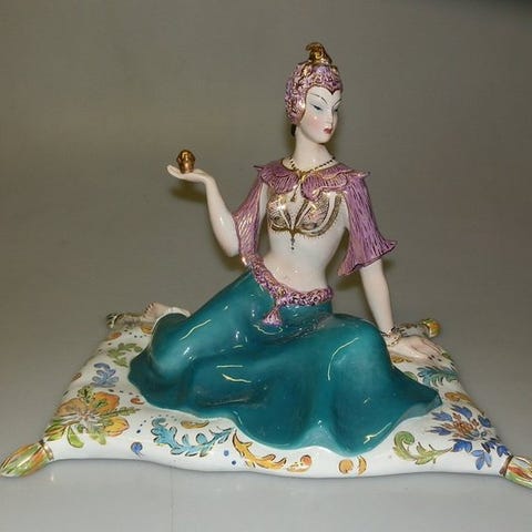 Hvid biscuit-keramikskulptur Dame, naakt, af Ronzan, fra 1960, i Art Deco-stil, 70 cm høj, 20 cm bred, 22 cm dyb, signeret og med rundt mærke under bunden fra 1950–1956, i fremragende stand. Klik på den blå "gå til varen" knap, for at købe eller byde på denne vare. Den samlede pris vil blive vist inden du afgiver dit bud.