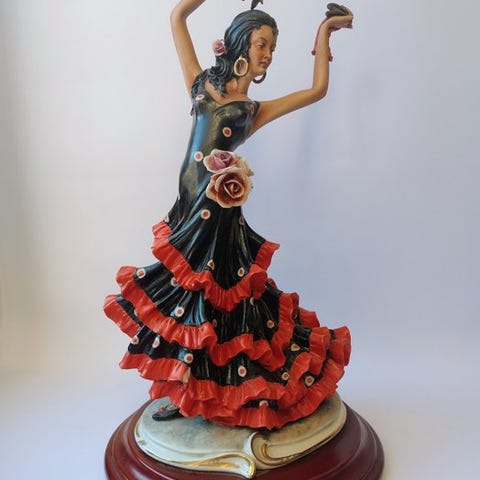 Stor statue i keramik lavet i Italien af keramikmesteren Domenico Poloniato i midten af 1900-tallet, i Capodimonte-stil ...Længden er 54 cm og højden omkring 23 cm.
