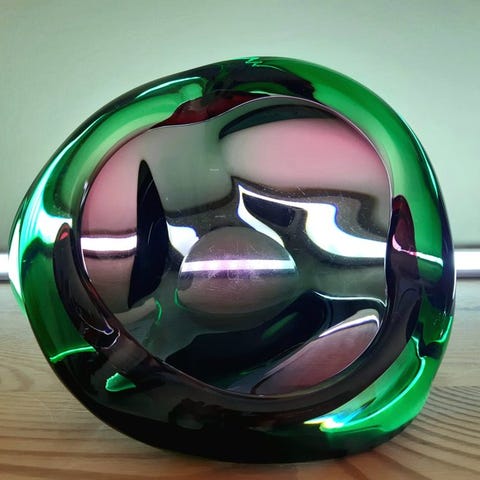 No breaks, no cracks. Dejlig visuel effekt afhængig af vinklen, man ser på den. (Billederne er en del af beskrivelsen)