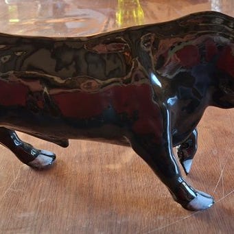 Stor keramisk skulptur af en liggende ulvehund fra Keramos Wien, Fayence, flerfarvet, tegnet af Ina Eisenbeisser (model 5108), cirka 26 cm høj, 44 cm bred, 20 cm dyb, vægt cirka 1,6 kg, fremstillet ca. 1940–1950, i fremragende stand med minimale brugsspor. Klik på den blå "gå til varen" knap, for at købe eller byde på denne vare. Den samlede pris vil blive vist inden du afgiver dit bud.
