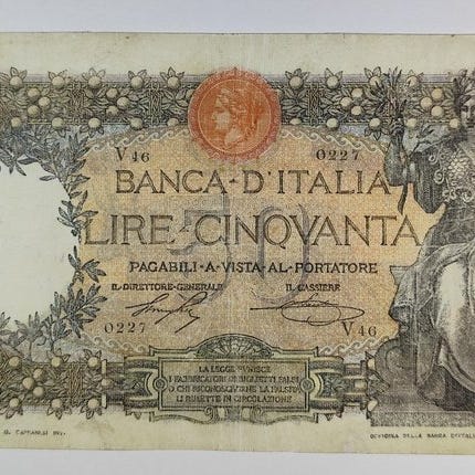 500 lire stor bogstav „C“, enkelt eksemplar, Kongeriget Italien, Vittorio Emanuele III, dateret 31/03/1943, bagsiden med fasci, tilstand uden bedømmelse, sjældenhed 3. Klik på den blå "gå til varen" knap, for at købe eller byde på denne vare. Den samlede pris vil blive vist inden du afgiver dit bud.