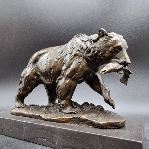 Bronzestatue med titlen 'Fairy Riding Flying Fish' fra 2026, Asia, i fremragende stand, håndsigneret, placeret på en poleret marmorbase, målene 38 cm høj, 26,5 cm bred, 15,5 cm dyb og vejer 5,8 kg. Klik på den blå "gå til varen" knap, for at købe eller byde på denne vare. Den samlede pris vil blive vist inden du afgiver dit bud.