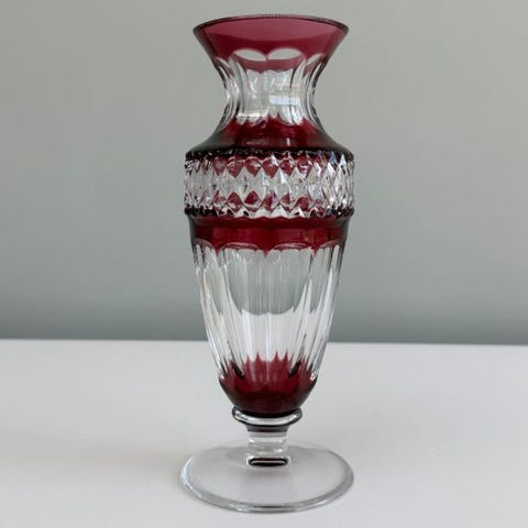 Smuk Val Saint Lambert-vase, model 'Gary', i tofarvet (rød - klart), slebet blykrystal.