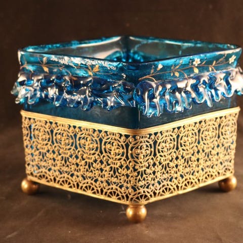 Bud her på en vidunderligt velbevaret serveringsvogn fra Frankrig. På den tid blev den fremstillet af messing og af høj kvalitet. Sjældent har man set en så velbevaret genstand, trods alderen. Der er naturligvis, som det passer til alderen, nogle mindre brugsspor, men helt normale.