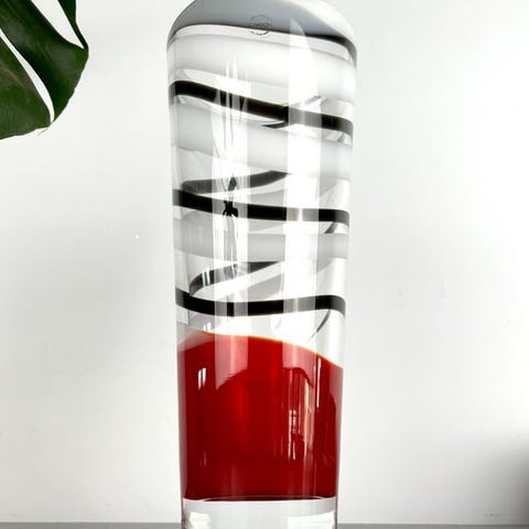 Denne Murano-glasvase er et kunstværk, der kombinerer italiensk håndværksmestring med orientalske påvirkninger. Inspirationen tager afsæt i den kinesiske amphora, en traditionel beholder brugt i Østen, og genfortolkes i en moderne og elegant fortolkning.
