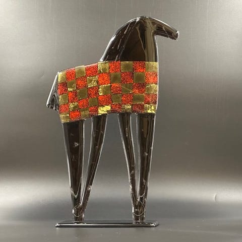 Flerfarvet keramisk hest fra Delft-Desvres, vintage stykke fra Nederlandene, underskrevet i afsatsen, målene 25 cm bred, 24 cm høj, 9,5 cm dyb, vægt 1,2 kg, i fremragende stand. Klik på den blå "gå til varen" knap, for at købe eller byde på denne vare. Den samlede pris vil blive vist inden du afgiver dit bud.