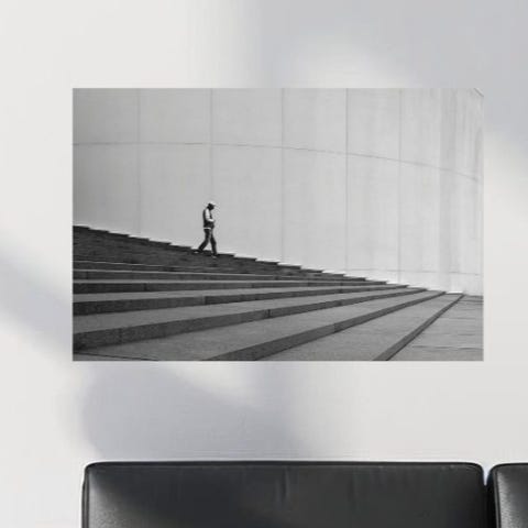 Isoleret i den stille Tomhed tidligt om morgenen i New York rammer dette sort-hvide fotografi et flygtigt øjeblik af nåde ved Bethesda Terrace i Central Park, det ikoniske. De store Minton-flisebuer skaber en kraftig silhuet, der leder øjet mod en ensom danser, hængende i et øjeblik af elegant bevægelse. Samspillet mellem dybe skygger og den bløde morgenvindlyset fremhæver den komplekse arkitektur af terrassen og danserens eteriske form, og skaber en komposition, der er både tidløs og dybt personlig.