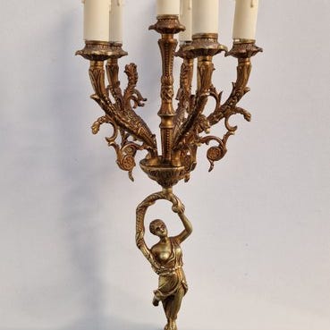 Fransk antik lampe i Napoleon III-stil fra ca. 1930–1940, krop af hvid marmor med bronzedetaljer, 50 cm høj, firkantet marmorbund med 11 cm side og 11 cm dybde, elektrisk med original ledning og i god brugt stand. Klik på den blå "gå til varen" knap, for at købe eller byde på denne vare. Den samlede pris vil blive vist inden du afgiver dit bud.