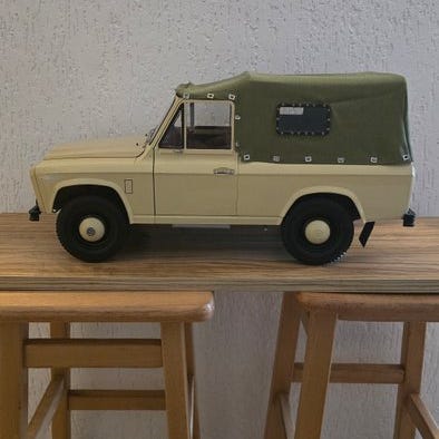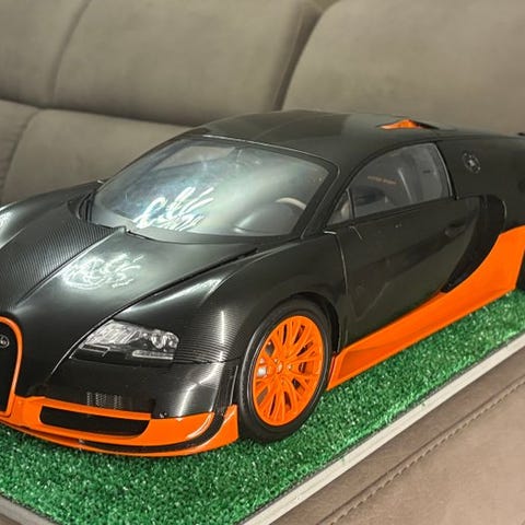 Dodge Charger i meget god stand. Godt samlet. Døre sidder perfekt. Motorhjelmen passer perfekt. Det eneste problem er el- installationen; den virker af og til. Det kan skyldes langvarig stående i et udstillingsskab. Forsendelsen sker i to pakker; bilen separat og udstillingsskabet separat.