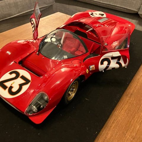 Centauria Ferrari La Ferrari i skala 1:8 med en metallisk malet chassis og et elektrisk system, der tænder forlygter, baglygter, blinklys, horn, bremser, motorlyd og speeder, leveret med en monteringsopslagsbog og italiensk historiebeskrivelse; fejl: bagpå mangler prancino-emblemet, forrudevisker ødelagt og forruden ikke helt fastsat. Klik på den blå "gå til varen" knap, for at købe eller byde på denne vare. Den samlede pris vil blive vist inden du afgiver dit bud.