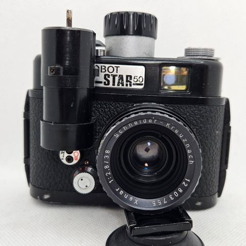 ROBOT ROYAL36 er et sjældent manuelt optrukket mekanisk kamera, udstyret med et Nikon Nippon Kogaku 50 mm f/2.5-objektiv! Optrækmekanismen fungerer perfekt. Efter test er lukkertidsskærmen normal. Der ses en lille bule på kameraets overside, et stykke læder, der løsner sig let på venstre side, og nogle gule pletter. Lukkertiderne er konstante, og objektivet fremviser hverken skimmel eller dug. Den oprindelige filmkassette findes i filmrummet. Objektivet er interessant; det kunne være en sjælden trykfejl. Nikon har kun produceret nogle få dusin af disse objektiver, hvilket gør dem ekstremt sjældne! Blændehjulet er mærket « 1,9 ». Linsens behandling er i god stand, alle funktioner er normale, og der ses nogle få mindre ridser.