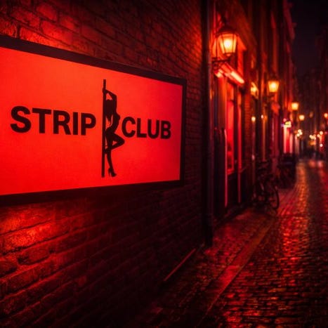 Lysende skilt Red Light District med dimensionerne 65 cm x 27 cm x 7 cm og med et billede af en stripper, der vækker erindringen om de berømte steder med rødt lys. Siden 1970'erne tilbyder disse steder et diskret kig ind i private kabiner til liveoptrædener, og bevarer tilskuernes anonymitet. Og den dag i dag udgør de et eksempel på, hvordan byen har formået at regulere og normalisere voksenunderholdning i overensstemmelse med lokale bestemmelser. Disse rum er en del af Amsterdams bykultur og tiltrækker nysgerrige besøgende fra hele verden. Skiltene fra Red Light District er meget
