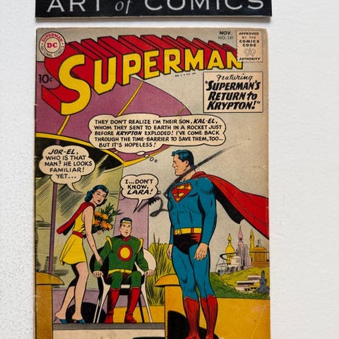 En engelsk udgave af Superman, første udgave udgivet af DC Comics i 1960, nr. 142 med Batma, Supergirl og Krypto, tegnet af Curt Swan, Stan Kaye, Wayne Boring, Kurt Schaffenberger, Jerry Siegel og Otto Binder, i meget pæn stand med hæftet binding. Klik på den blå "gå til varen" knap, for at købe eller byde på denne vare. Den samlede pris vil blive vist inden du afgiver dit bud.