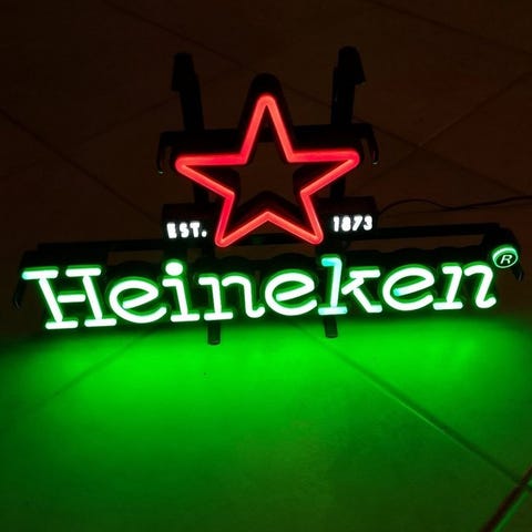 Originalt metalskilt af Heineken fra 1995, udført i relief (embosset).