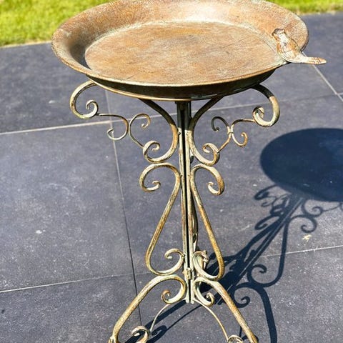Et rigtig smukt smedejern fuglebad. Også ideelt til at plante en hængeplante. Målene er som følger (+/-):