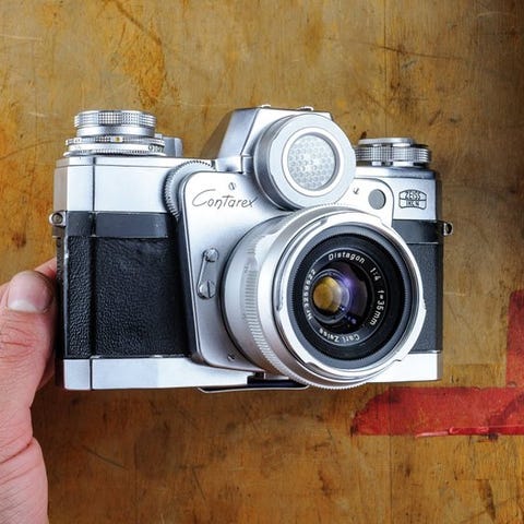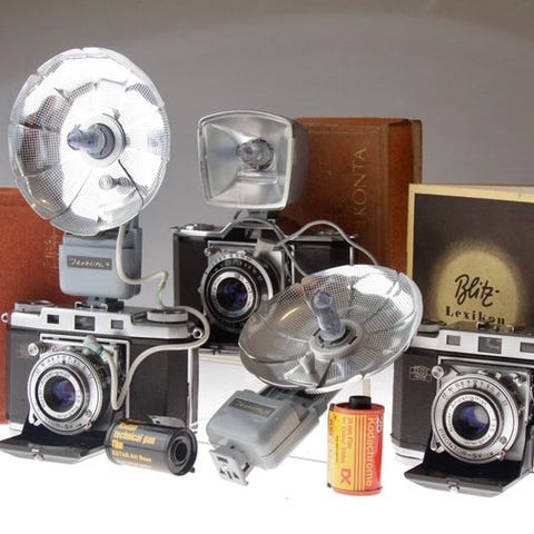 Med denne enhed kunne motiver først observeres gennem kikkerten og derefter fotografere direkte. Meget god og pæn vintage tilstand, optik og kabinet i god stand. Med originaletui, bærestroppen og vejledning. Fungerer fejlfrit med filmkassette.