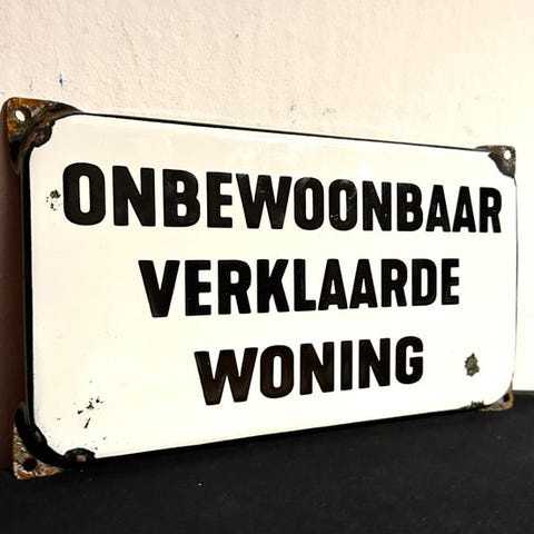 Die klassische Gestaltung mit klarer Schrift und kontrastreichen Farben macht das Stück zu einem authentischen Zeitdokument aus der Mitte des 20. Jahrhunderts. Solche Schilder wurden häufig an Einfahrten, Höfen oder Garagen angebracht und sind