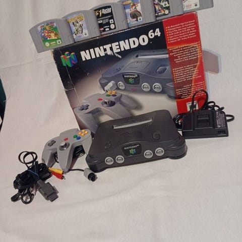 Tre retro spillekonsoller NES/SNES/N64 fra 1987, i meget god stand og i drift, med spil, controllere og kabler. Klik på den blå "gå til varen" knap, for at købe eller byde på denne vare. Den samlede pris vil blive vist inden du afgiver dit bud.